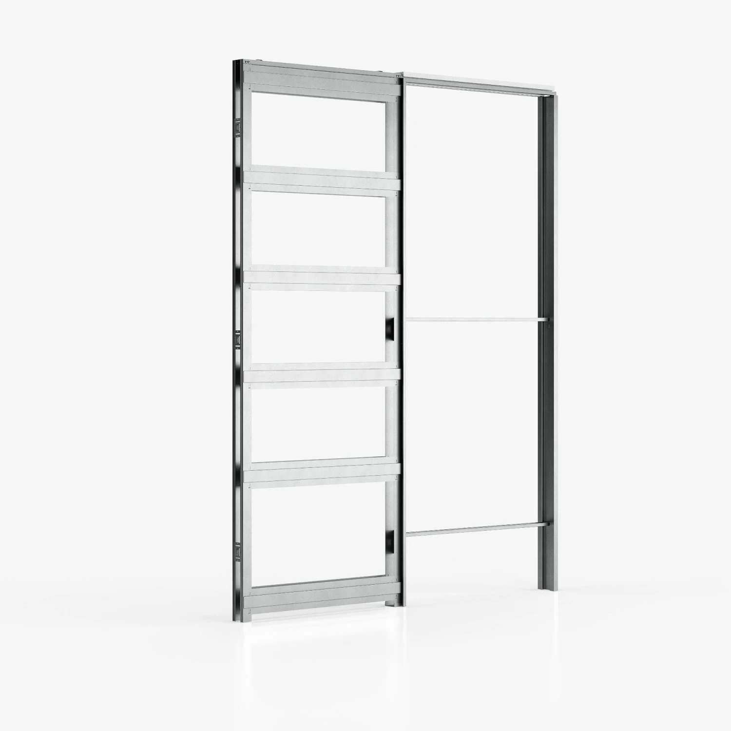 The Evokit White Primed Single Pocket Door System is a more traditional framed pocket door system created by Atlantic UK. Featuring a sturdy design thanks to its galvanized steel and aluminium construction, this pocket door system has strong metal door jambs, and horizontal reinforcements as well as an extractable rail which can be easily checked for quality sliding.