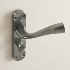 Scimitar Internal Bathroom Lever Handle On Round Rose Handle Set – Gun Metal Grey (107884)