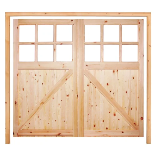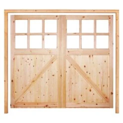 Solid Redwood Unfinished External Framed, Ledged And Braced 6 Light Obscure Garage Door And Frame Set (119228)