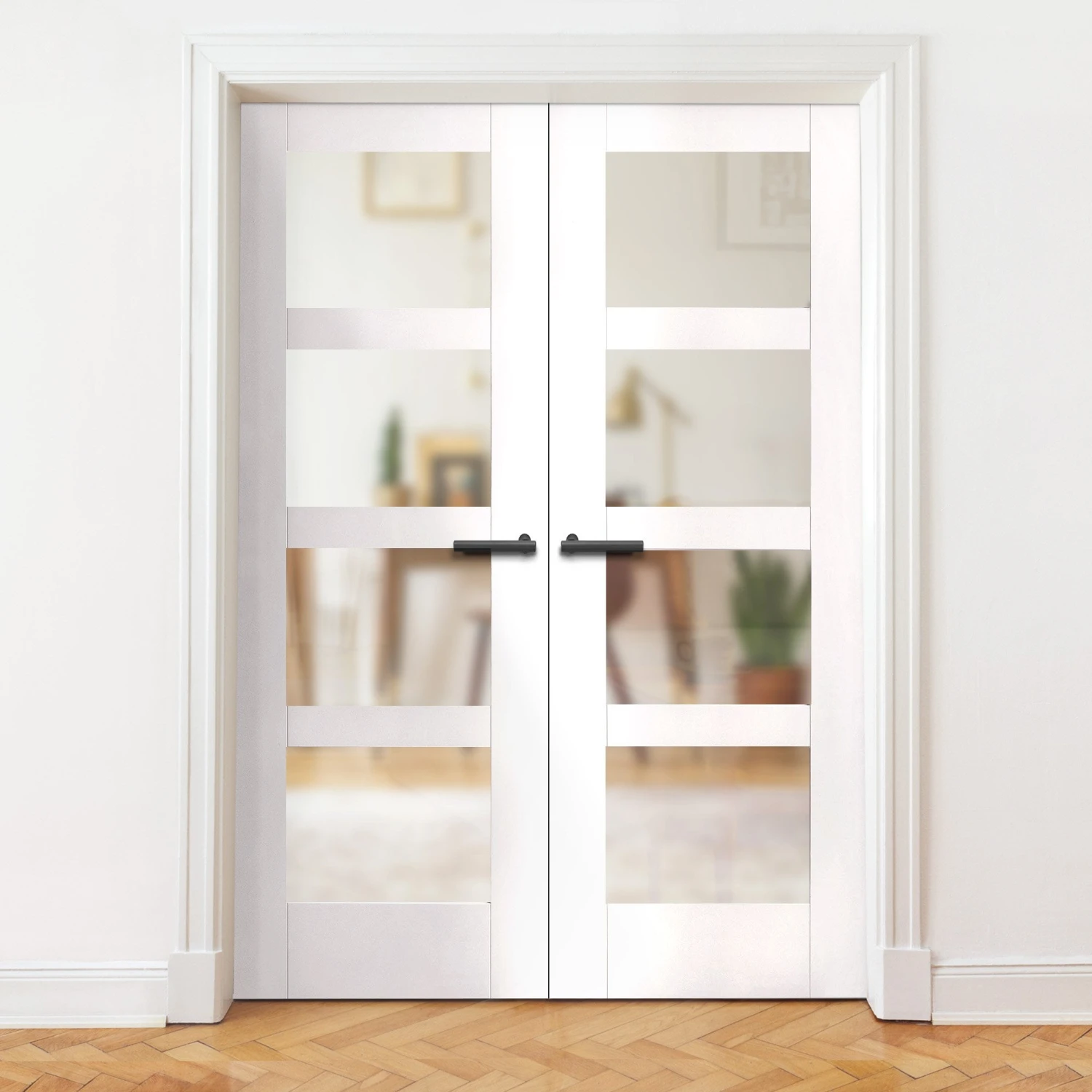 Enhance your home with the subtle elegance and functional design of the Internal White Primed Shaker 4 Light Obscure Glass Pair Door. This sophisticated set, featuring two doors, is primed in a bright white, offering a clean and adaptable look that complements any interior design. The Shaker style, renowned for its simplicity and clean lines, incorporates four panels of obscure glass, designed to allow light to filter through while providing privacy. The inclusion of a White Internal Primed 35mm Door Pair Maker ensures a seamless and professional installation, resulting in a polished and cohesive appearance that enhances the aesthetic and practicality of your living space. Ideal for those seeking a blend of modern design, light diffusion, and privacy, this door pair is a testament to contemporary interior elegance.