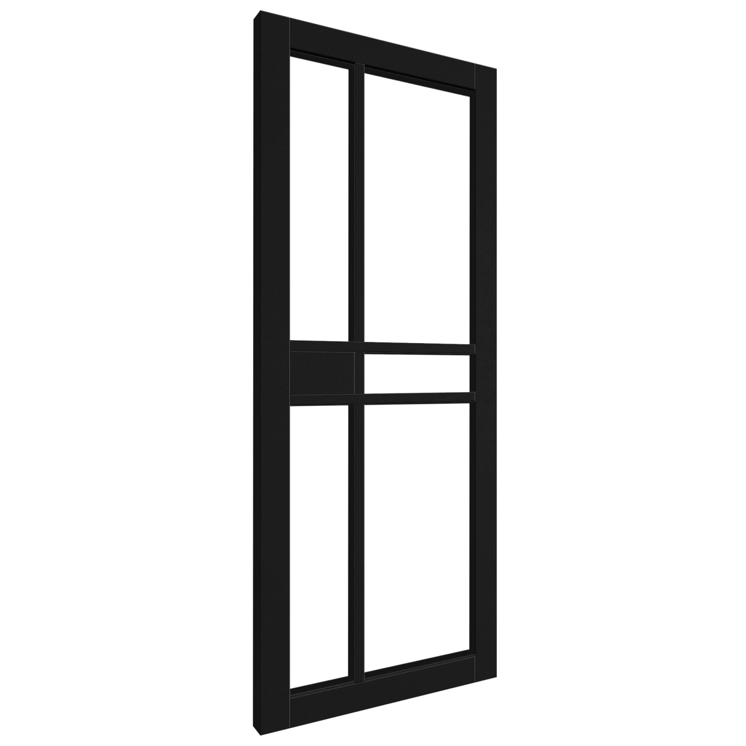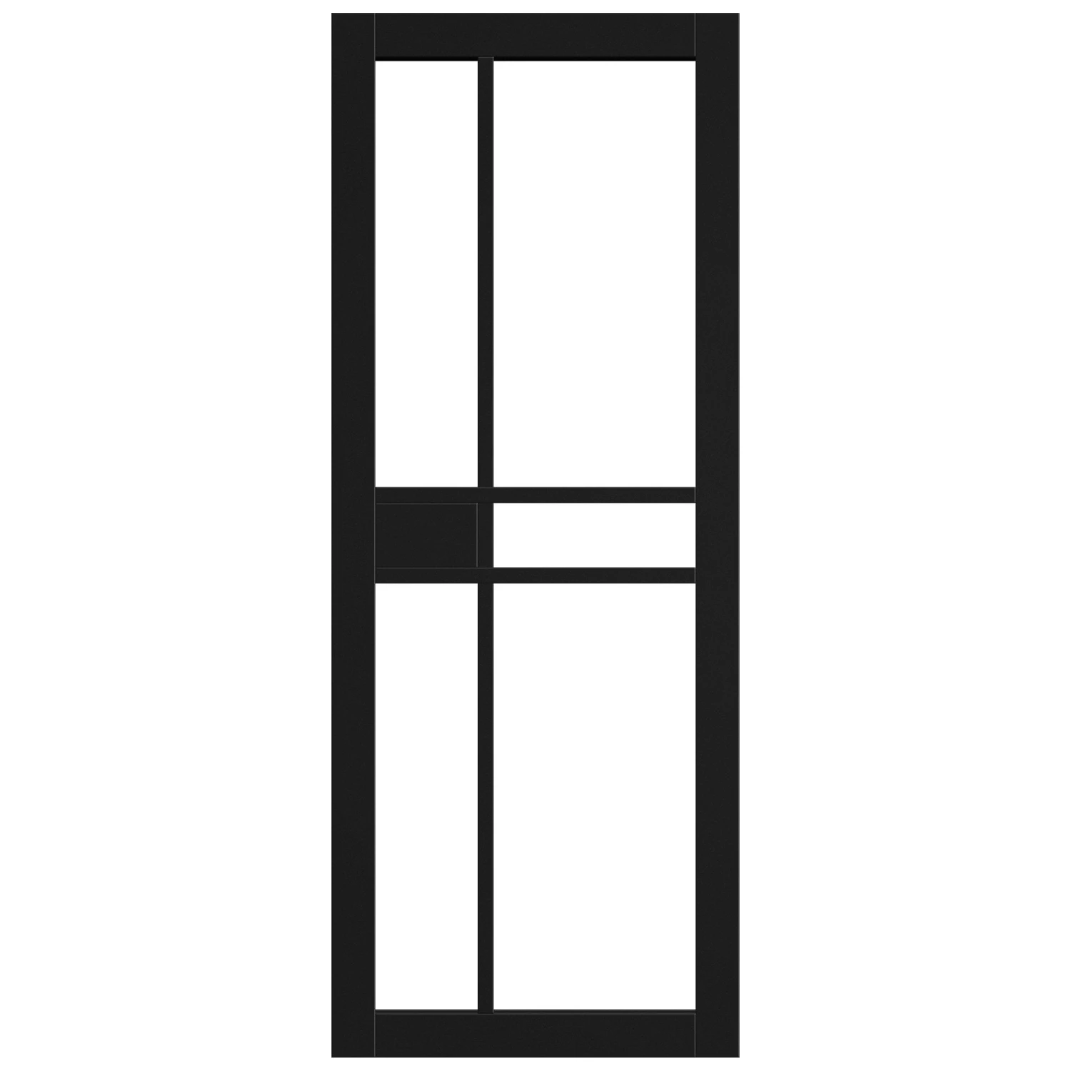 The Liberty Doors Jet Black Internal Fully Finished Studio 1 Panel 5 Light Clear Glass Door combines industrial studio style with modern elegance. Crafted from premium timber and pre-finished to perfection, this door offers a sleek jet black finish that adds sophistication to any interior space. The clear toughened safety glass panels allow natural light to flow between rooms, enhancing both ambience and visibility.