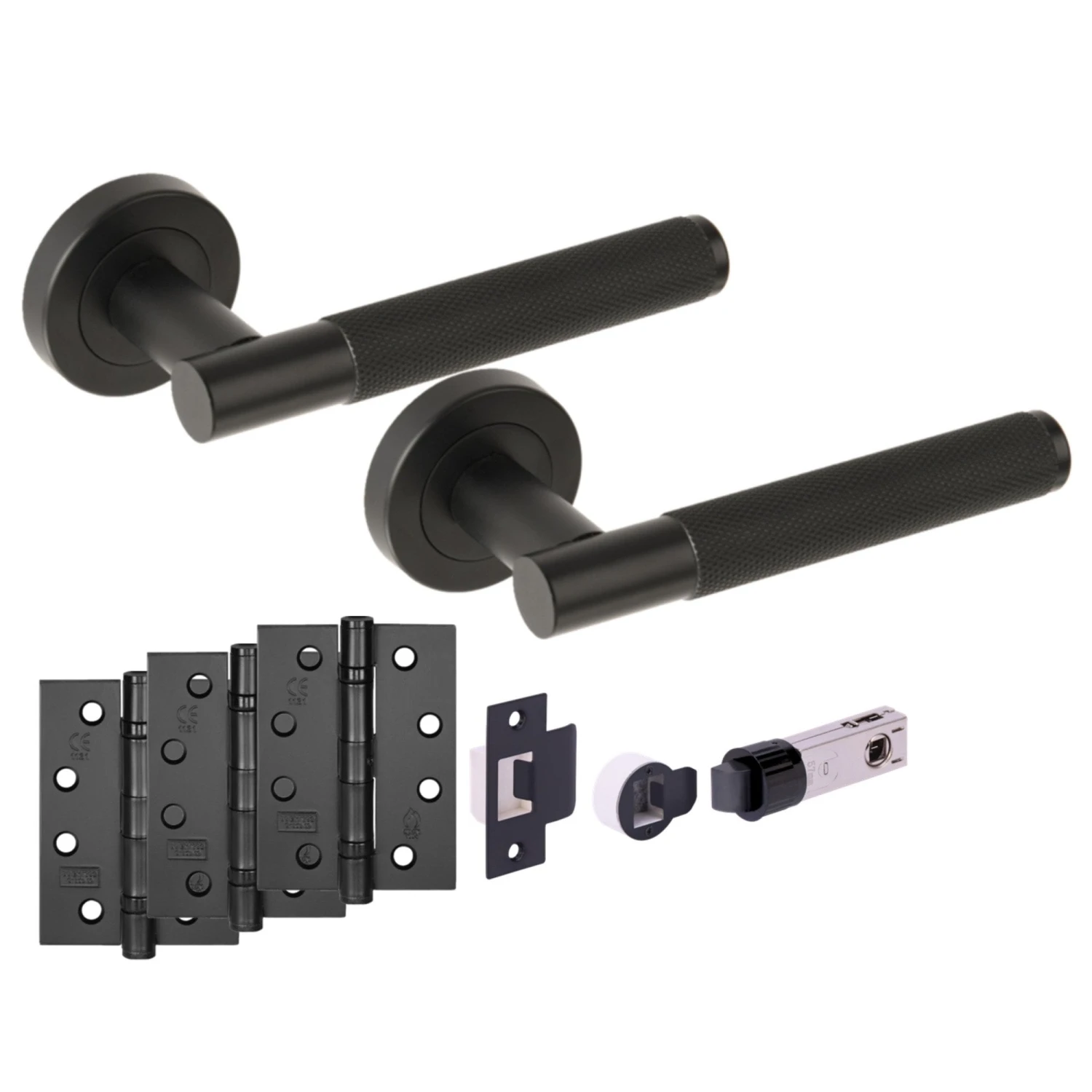 Introducing the Knurled Internal Fire Rated Lever Smart Handle Pack, Matt Black by Leader. A fusion of classic design with modern convenience, this handle set elevates any interior with its sleek aesthetic. Crafted with a timeless design, it enhances both traditional and contemporary spaces. Promising robust functionality and style, it’s ready to enhance your doors immediately upon installation.