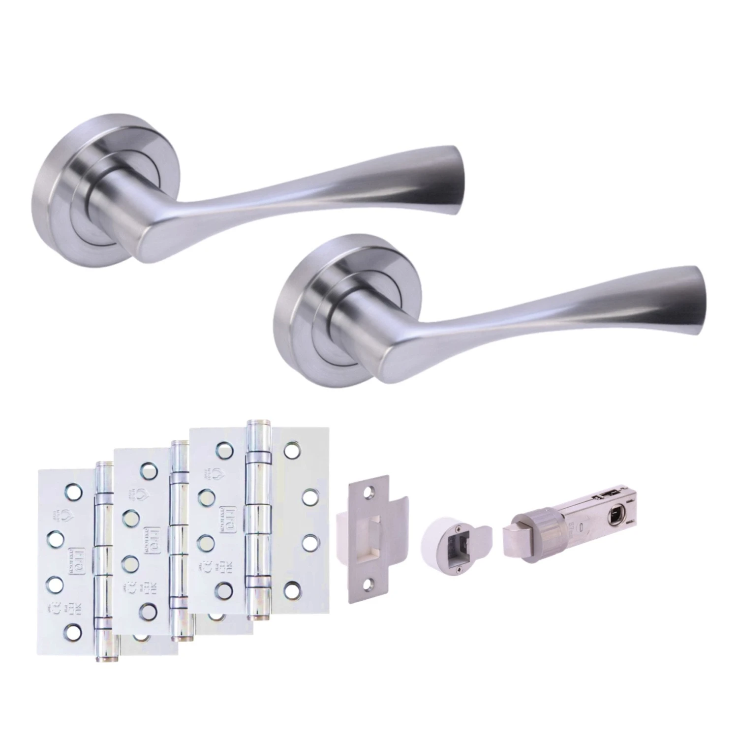 Enhance the safety and style of your doors with the Oasis Round Rose Lever Fire Rated Handle Pack, elegantly finished in satin chrome. This comprehensive set not only meets stringent CE13 fire safety standards but also brings a modern aesthetic to any entryway. It includes lever handles that offer ease of use and sophistication, a single bullet latch for secure locking, and ball bearing hinges for smooth, long-lasting operation. The satin chrome finish provides a sleek, contemporary look that complements any decor.