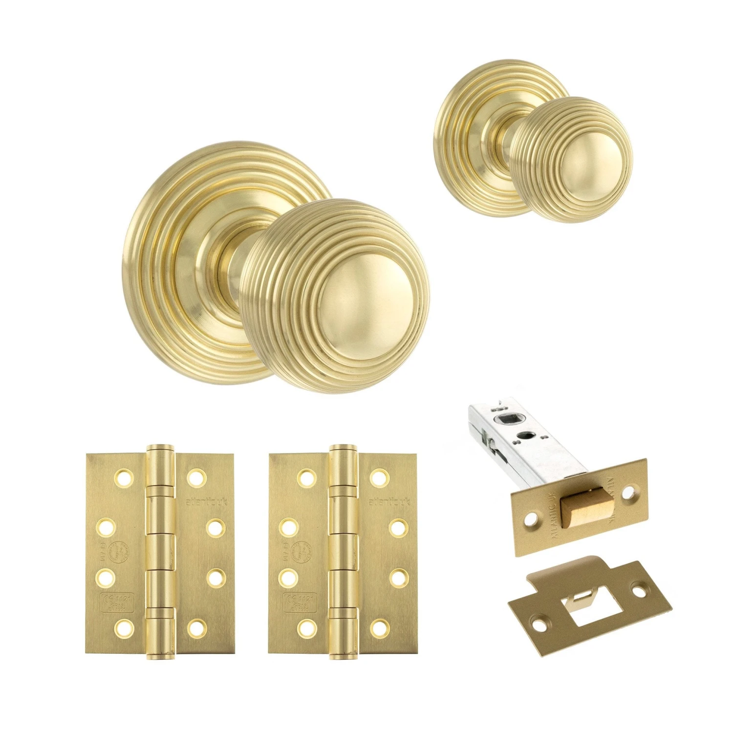 Introducing the Polished Brass Ripon Round Reeded Mortice CE13 Fire Knob Set by Atlantic UK, an essential component of Leader Online’ Ripon range. This stunning knob set combines safety with style, offering a polished brass finish that brings a touch of understated luxury to your fire doors. The set includes two reeded knobs, two fire-rated ball bearing hinges, and one fire-rated tubular latch, all backed by a robust 10-year mechanical guarantee, ensuring compliance without compromise.