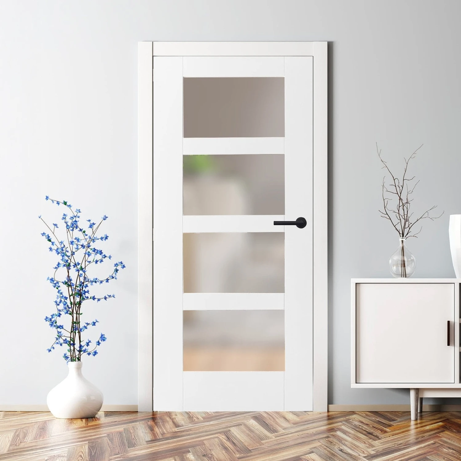 The Internal Shaker Door by Liberty Doors comes from their Internal White collection and is primed with a double coat, ready for a final finish. This particular design features 4 glazed panes of single glazed obscure glass. Constructed with a solid core and white primed, this door allows trimming of Up to 12mm from any side.