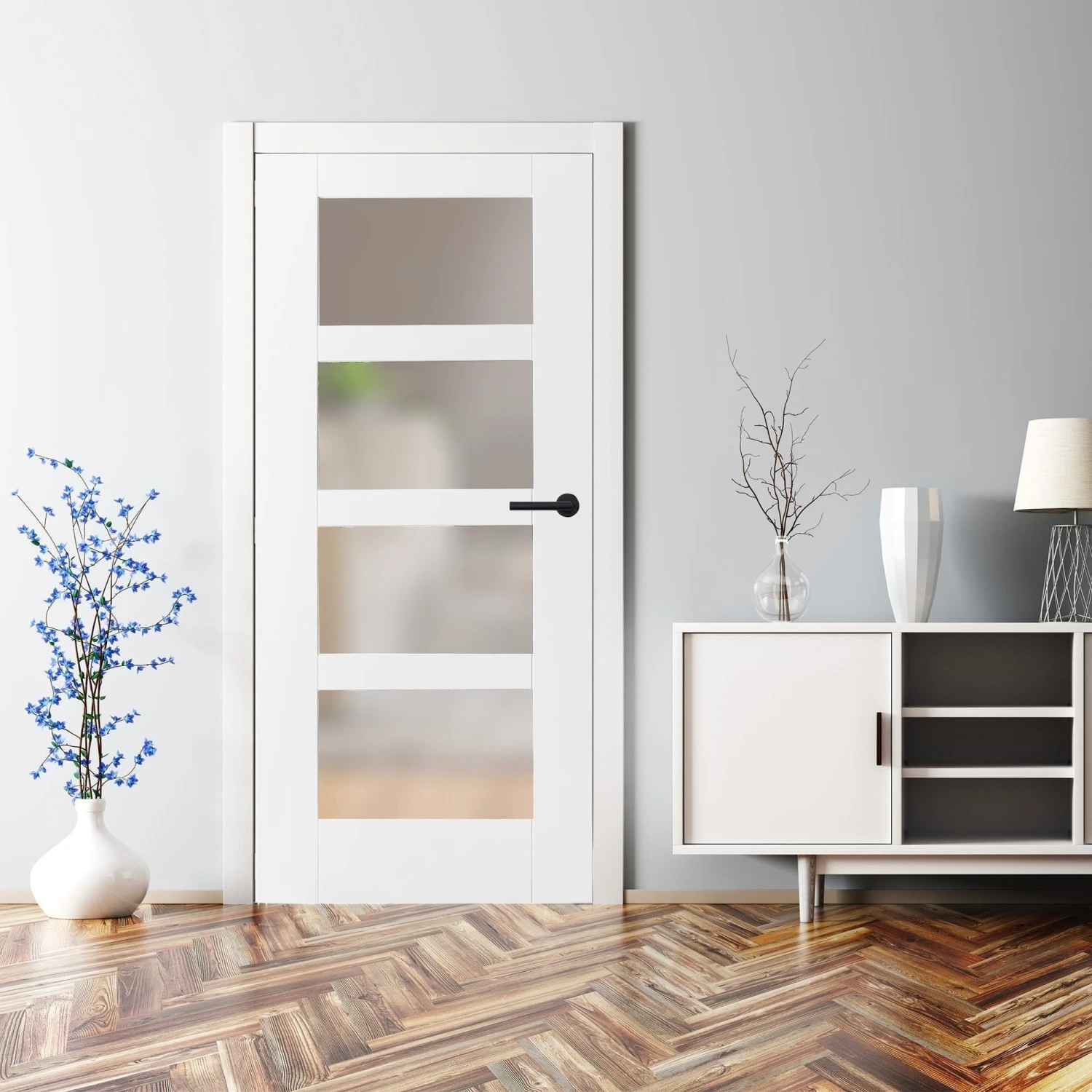 The Internal Shaker Door by Liberty Doors comes from their Internal White collection and is primed with a double coat, ready for a final finish. This particular design features 4 glazed panes of single glazed obscure glass. Constructed with a solid core and white primed, this door allows trimming of Up to 12mm from any side.