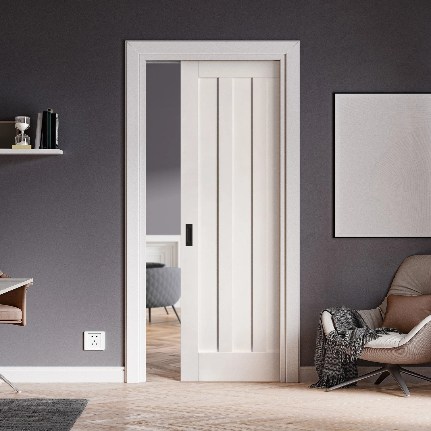 Pocket doors are an excellent choice for maximising space and enhancing the flow between rooms. The White Primed Internal Ashton 3 Panel Framed Pocket Door Set, part of our Liberty Doors range, is crafted from sustainable materials and includes a lifetime guarantee. The solid panel design offers a clean and modern aesthetic, making this door set suitable for various interior styles. The white primed finish provides a versatile base, ready for a topcoat that matches your decor, allowing you to customise the door to your specific style, whether you prefer a bold statement or a subtle, neutral finish. This door set is perfect for living rooms, bedrooms, or offices, where a combination of style, functionality, and customisation is desired. Its sleek design and customisable nature make it a practical and stylish choice for home renovations or new builds.